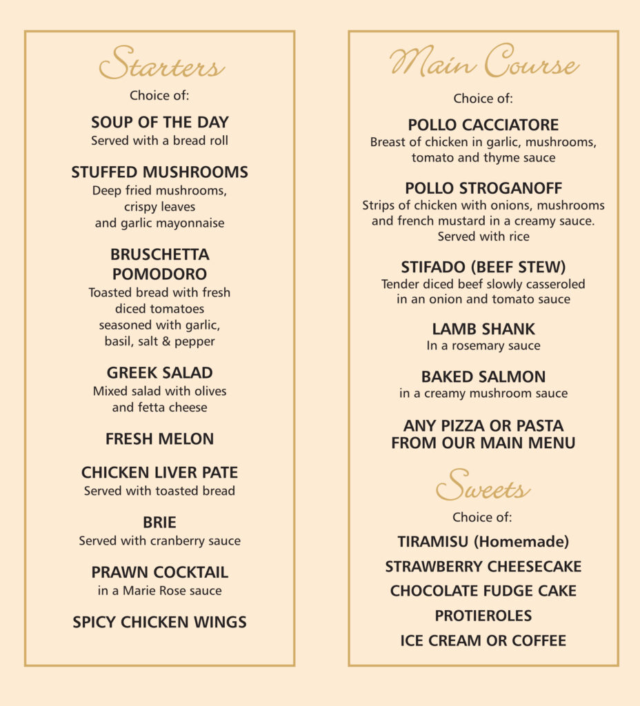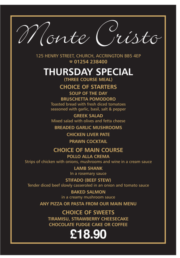With four special offer menus to choose from, Monte Cristo try to give all diners a chance to eat fine Italian cuisine at affordable rates!